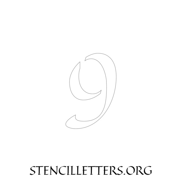 Printable Individual 0-9 Number stencils design 169 Calligraphy in 2 inch numbers high-resolution templates size.