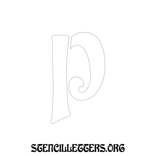 Printable Individual A-Z Alphabet stencils design 196 Art Nouveau in 2 inch lowercase high-resolution templates size.