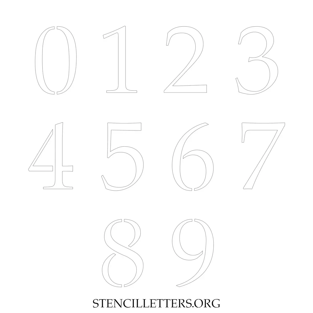 Stencil Design 16 Elegant. Print these free numbers stencils and make your own DIY templates for your stenciling projects. Available in high resolution printable sizes: 4 Inch, 5 Inch, 6 Inch, 7 Inch, 8 Inch, 9 Inch and 10 Inch.