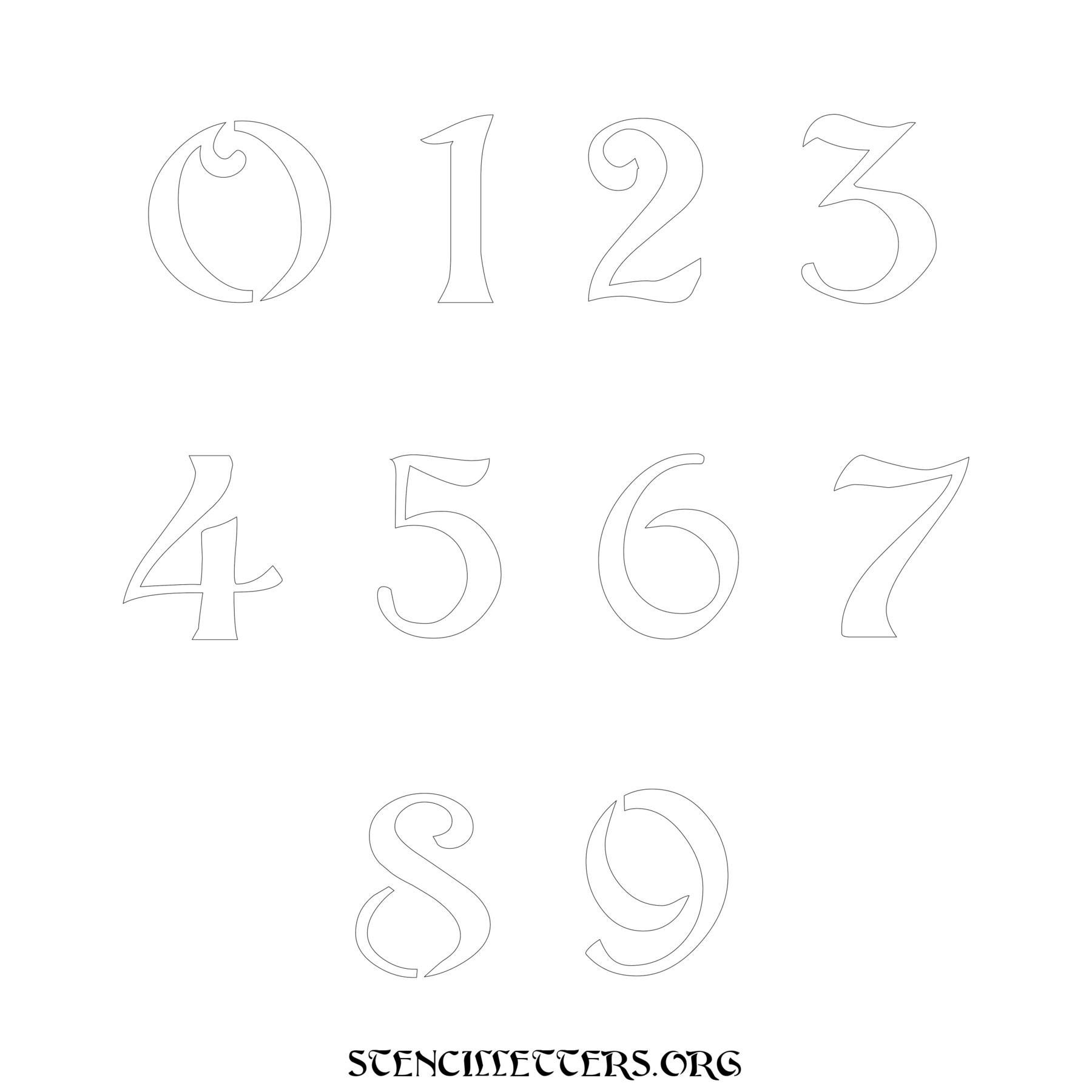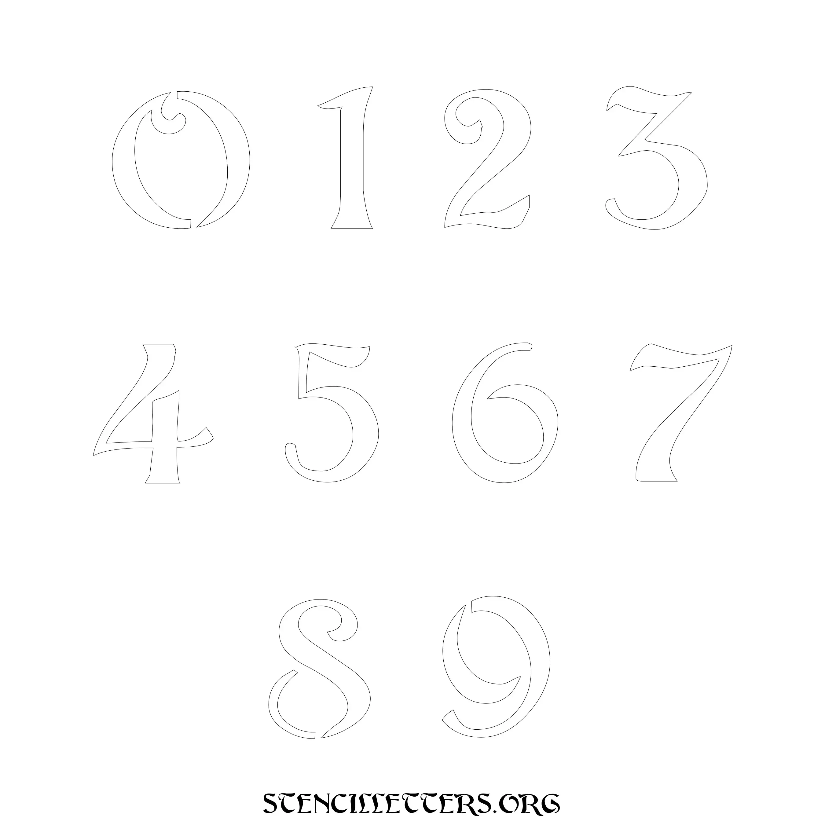 Stencil Design 195 Art Nouveau. Print these free numbers stencils and make your own DIY templates for your stenciling projects. Available in high resolution printable sizes: 4 Inch, 5 Inch, 6 Inch, 7 Inch, 8 Inch, 9 Inch and 10 Inch.