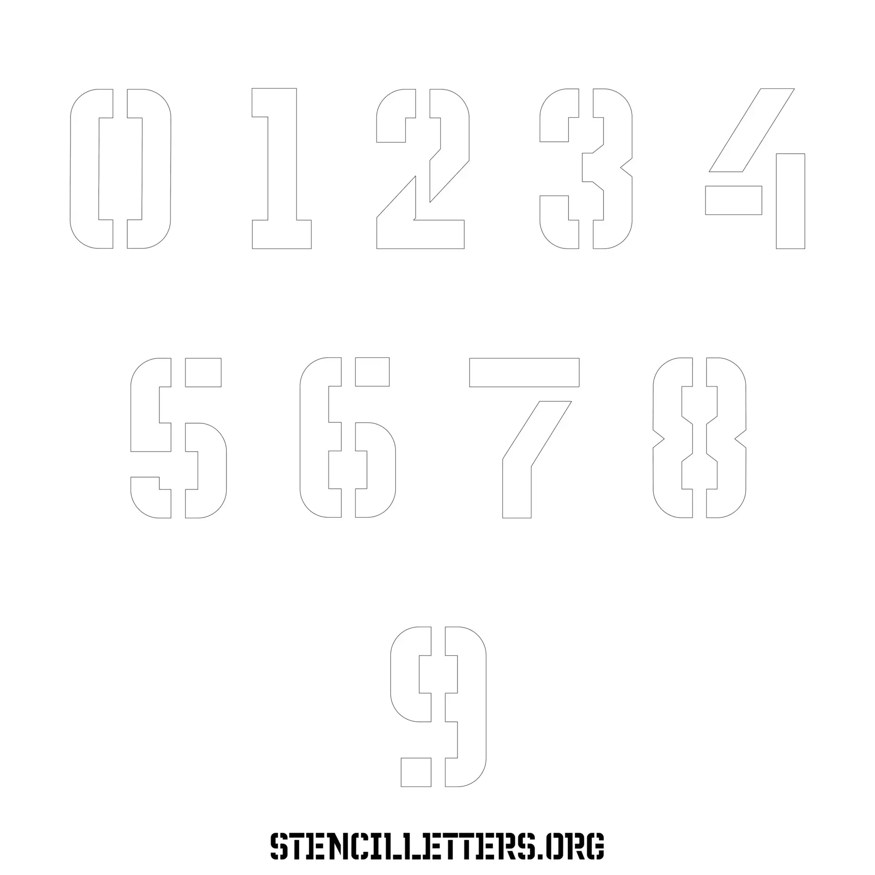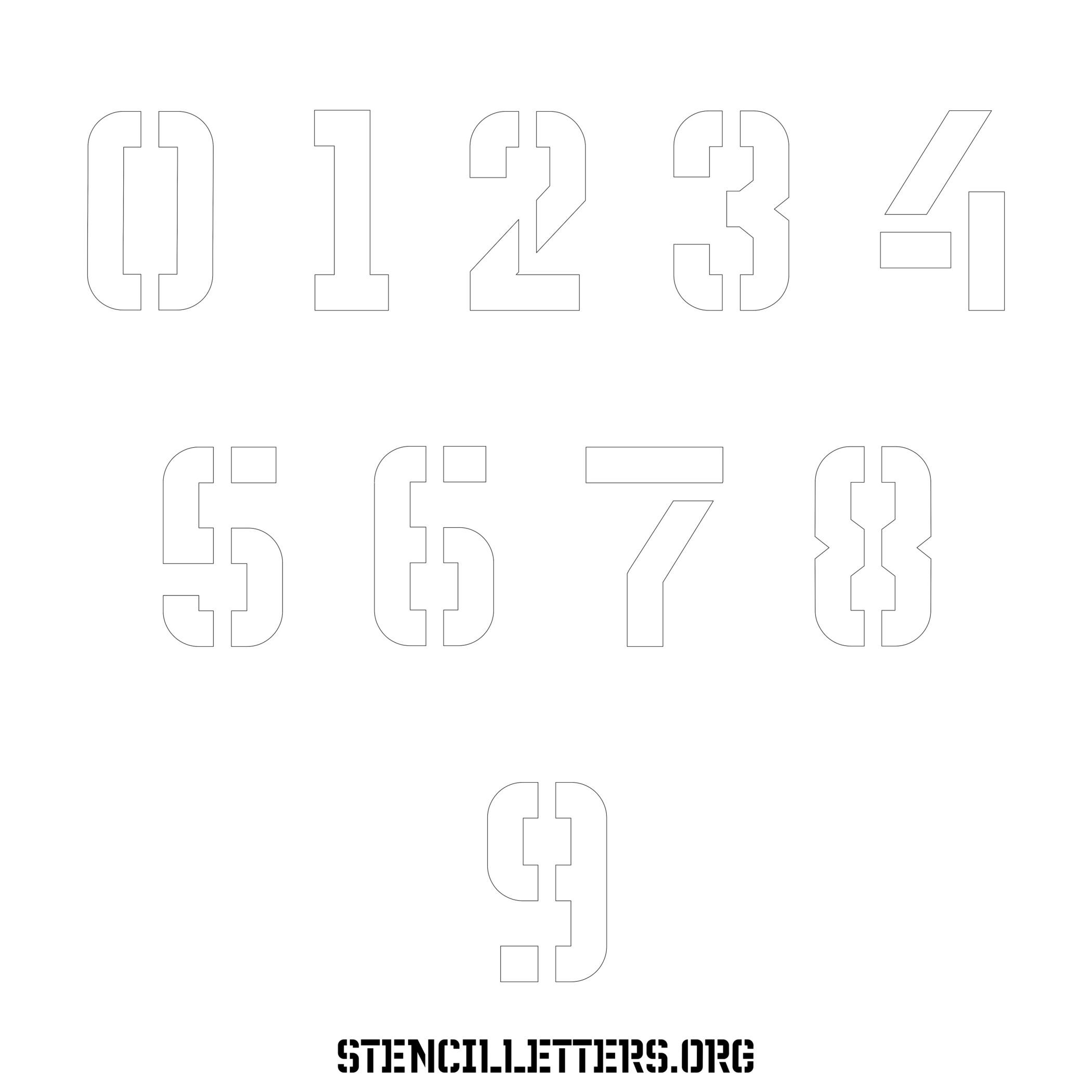 Stencil Design 230 Futuristic. Print these free numbers stencils and make your own DIY templates for your stenciling projects. Available in high resolution printable sizes: 4 Inch, 5 Inch, 6 Inch, 7 Inch, 8 Inch, 9 Inch and 10 Inch.
