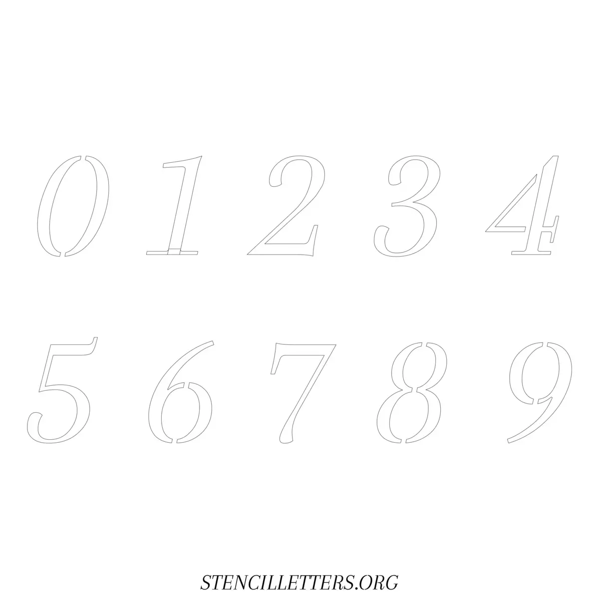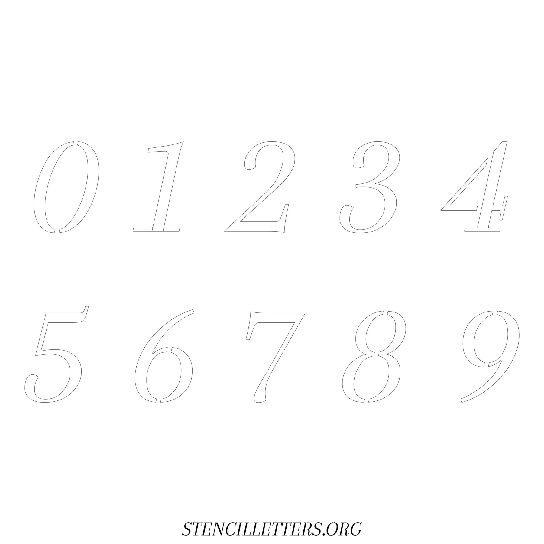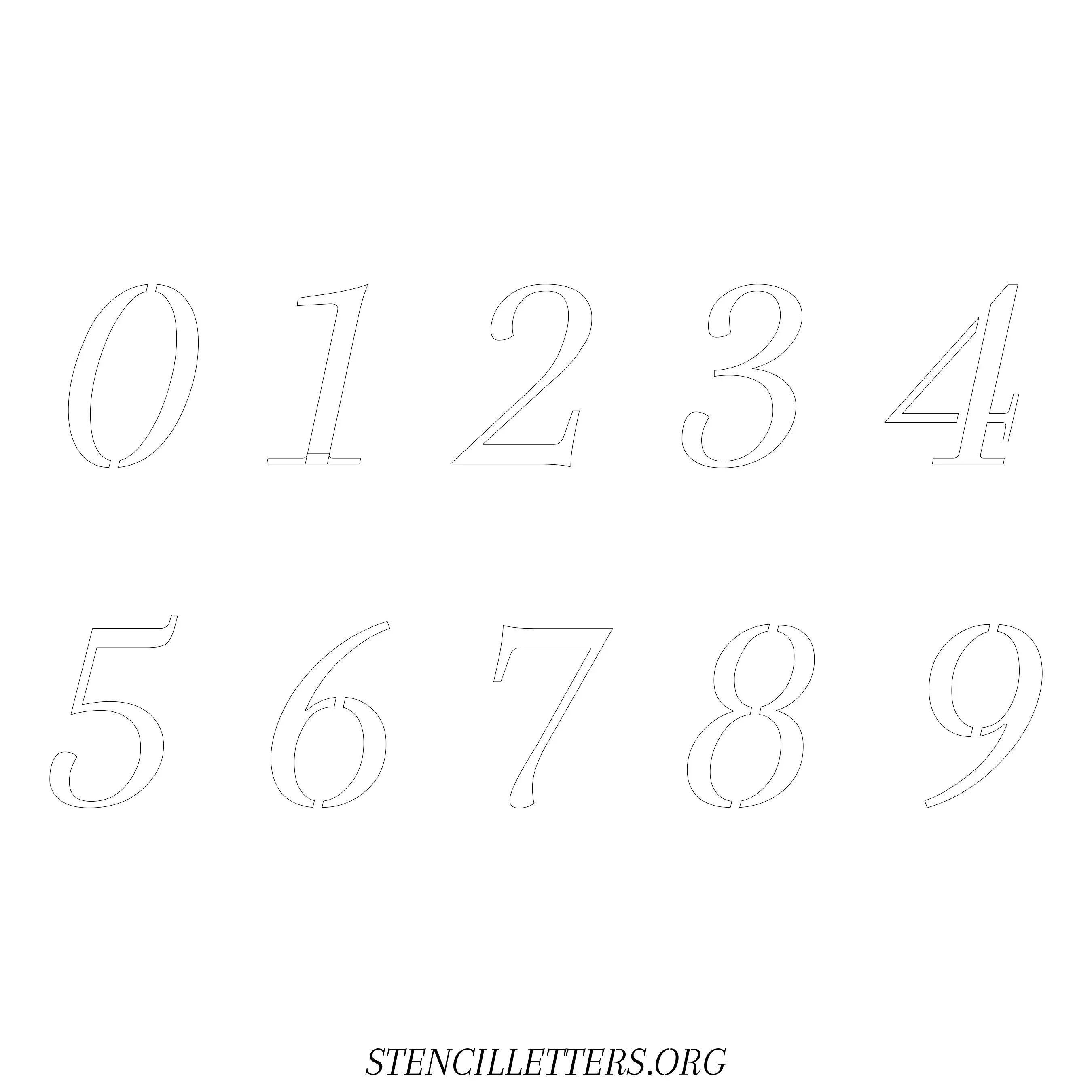 Stencil Design 42 Italic. Print these free numbers stencils and make your own DIY templates for your stenciling projects. Available in high resolution printable sizes: 4 Inch, 5 Inch, 6 Inch, 7 Inch, 8 Inch, 9 Inch and 10 Inch.
