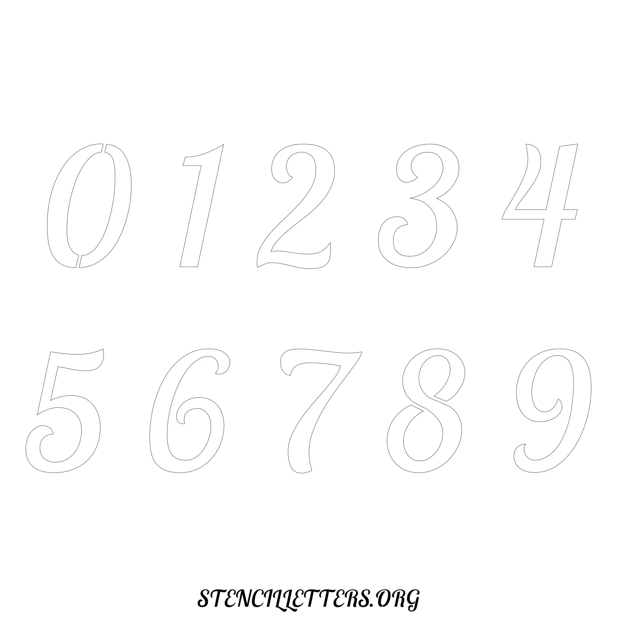 Stencil Design 45 Italic. Print these free numbers stencils and make your own DIY templates for your stenciling projects. Available in high resolution printable sizes: 4 Inch, 5 Inch, 6 Inch, 7 Inch, 8 Inch, 9 Inch and 10 Inch.