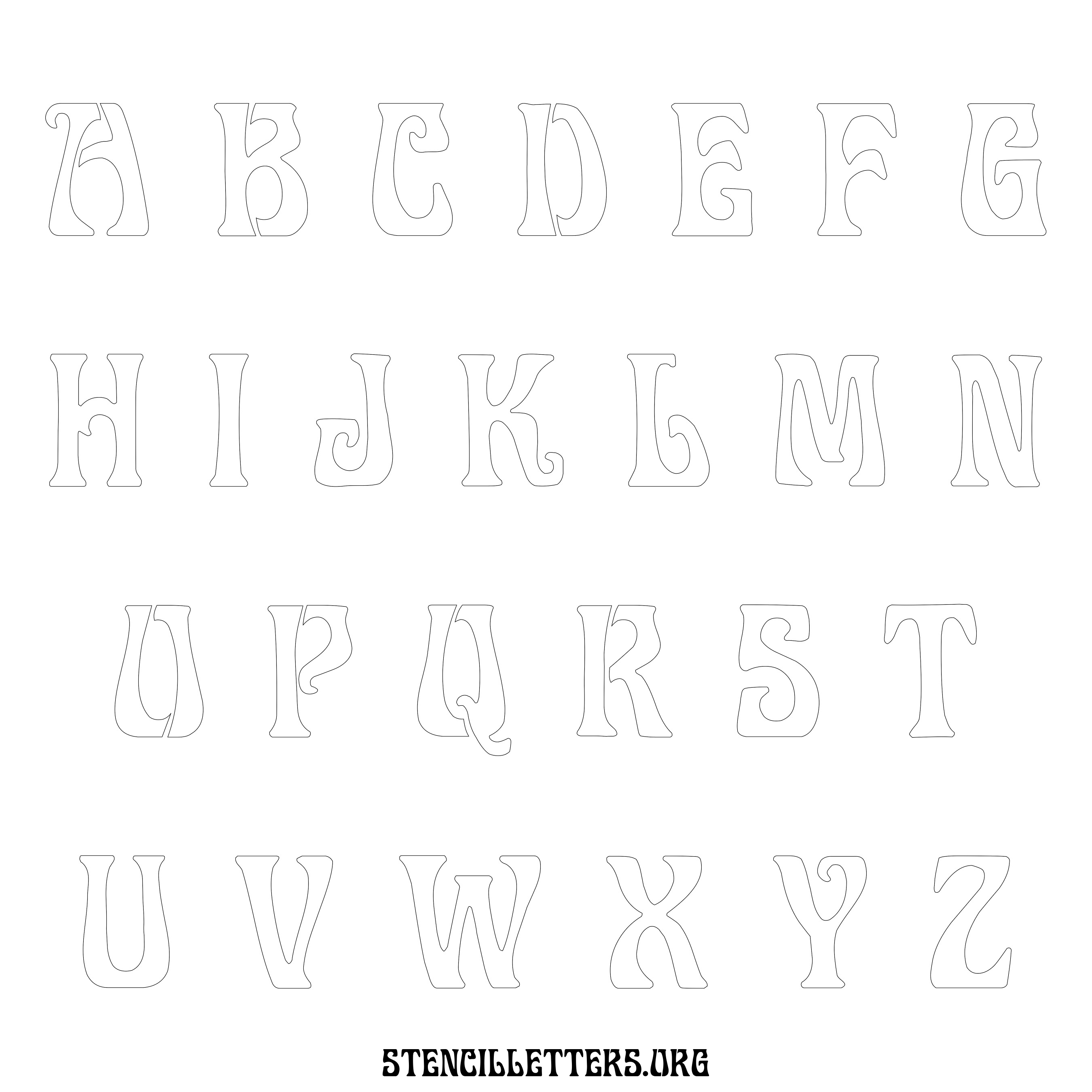 Stencil Design 191 Art Nouveau. Print these free lowercase letter stencils and make your own DIY templates for your stenciling projects. Available in high resolution printable sizes: 4 Inch, 5 Inch, 6 Inch, 7 Inch, 8 Inch, 9 Inch and 10 Inch.