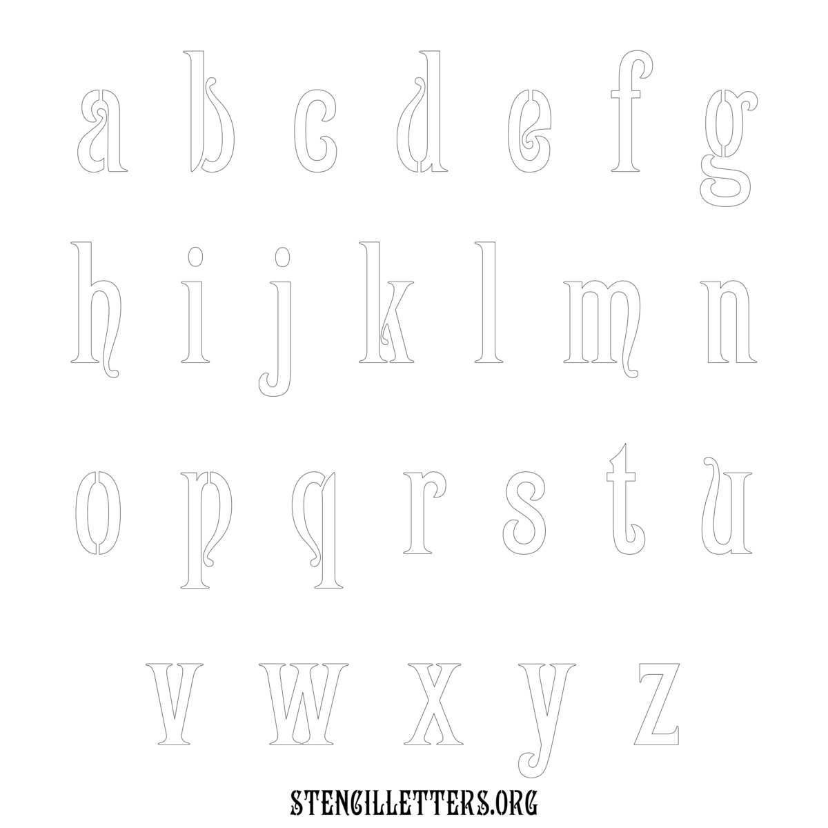 Printable Lowercase Alphabet Stencils - Design 192 Art Nouveau