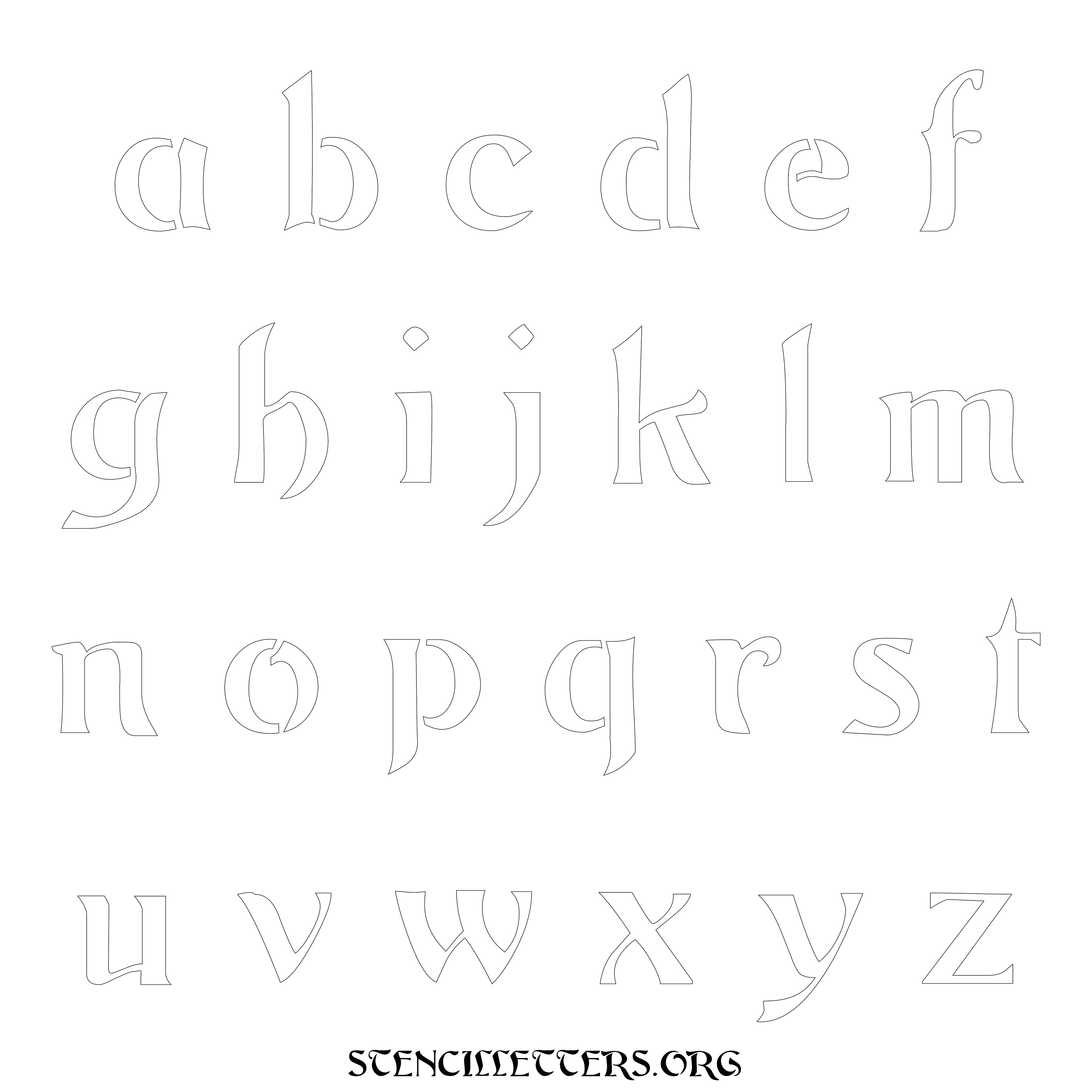 Printable Lowercase Alphabet Stencils - Design 195 Art Nouveau