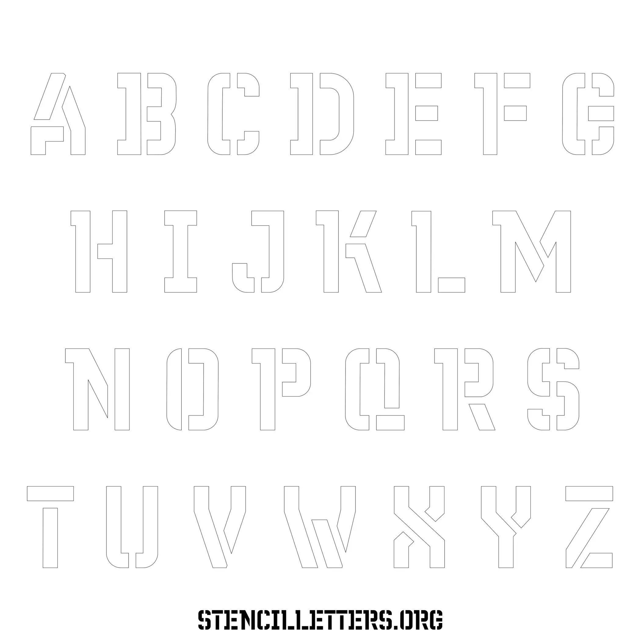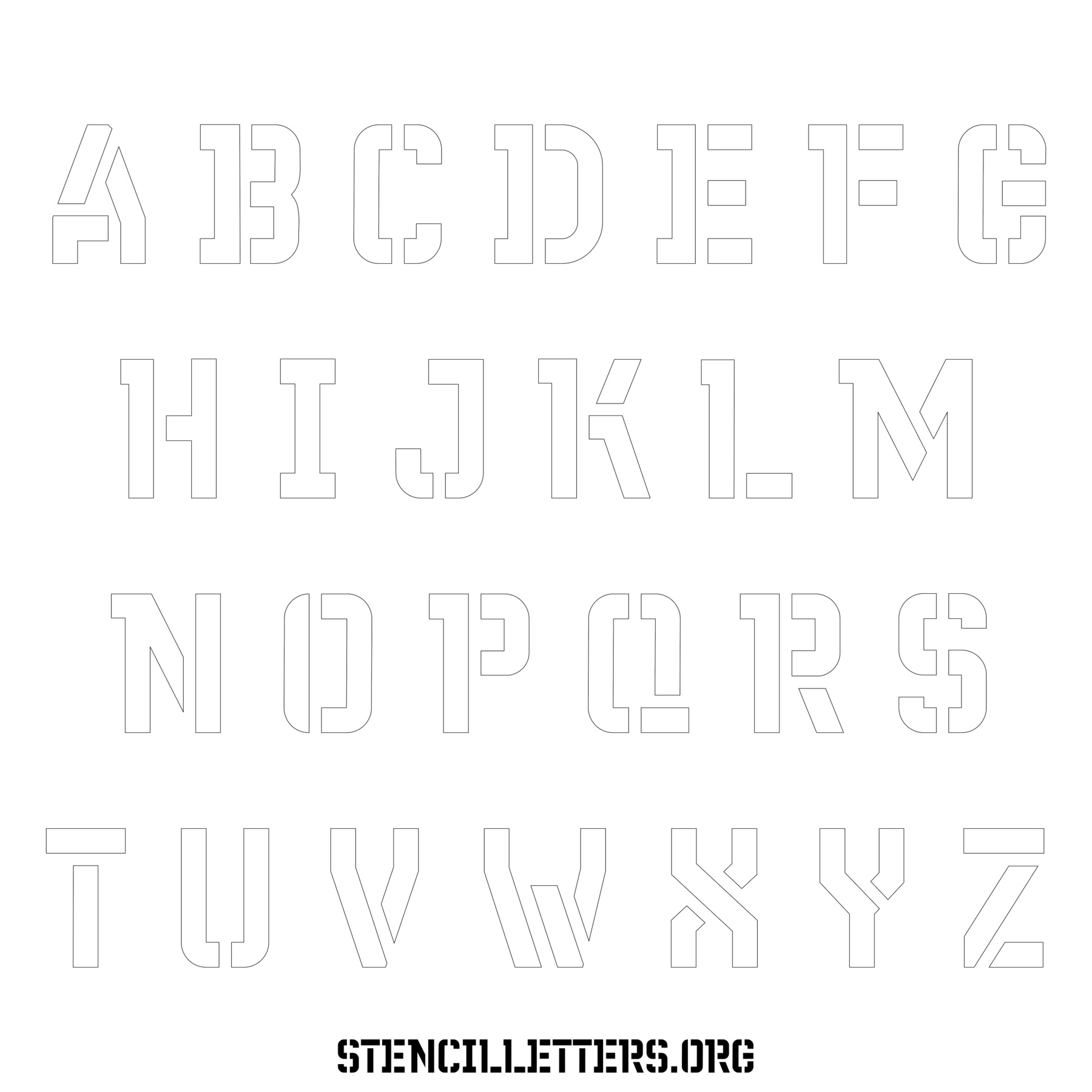 Stencil Design 230 Futuristic. Print these free uppercase letter stencils and make your own DIY templates for your stenciling projects. Available in high resolution printable sizes: 4 Inch, 5 Inch, 6 Inch, 7 Inch, 8 Inch, 9 Inch and 10 Inch.