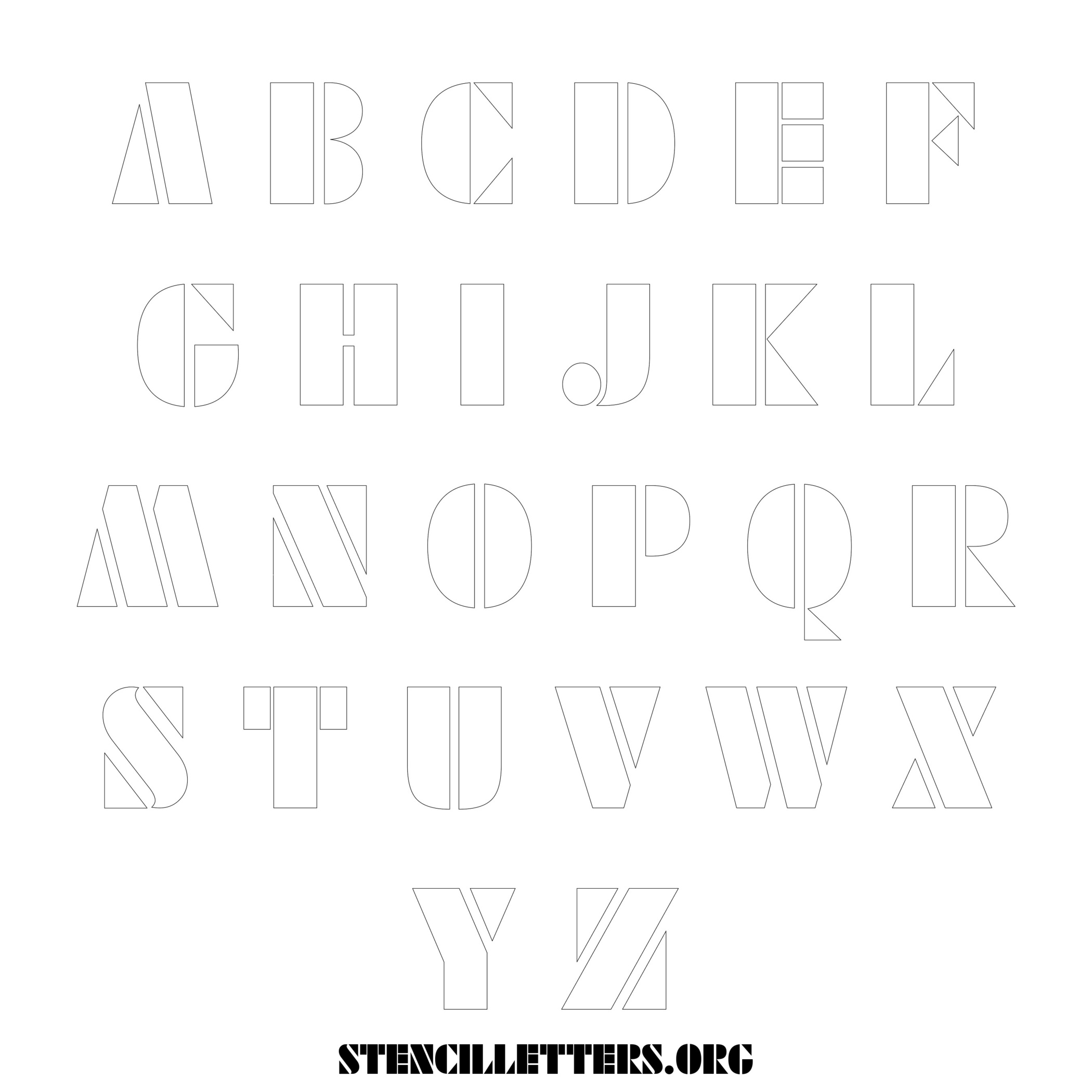 Stencil Design 252 Futuristic. Print these free uppercase letter stencils and make your own DIY templates for your stenciling projects. Available in high resolution printable sizes: 4 Inch, 5 Inch, 6 Inch, 7 Inch, 8 Inch, 9 Inch and 10 Inch.