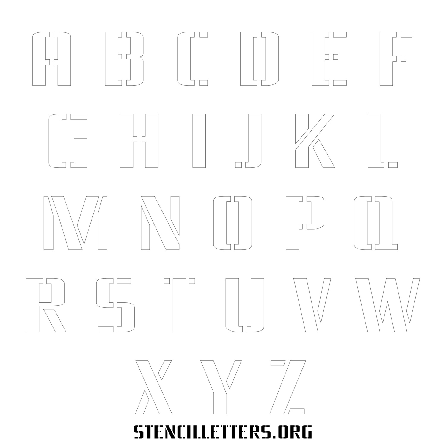 Stencil Design 255 Square. Print these free uppercase letter stencils and make your own DIY templates for your stenciling projects. Available in high resolution printable sizes: 4 Inch, 5 Inch, 6 Inch, 7 Inch, 8 Inch, 9 Inch and 10 Inch.