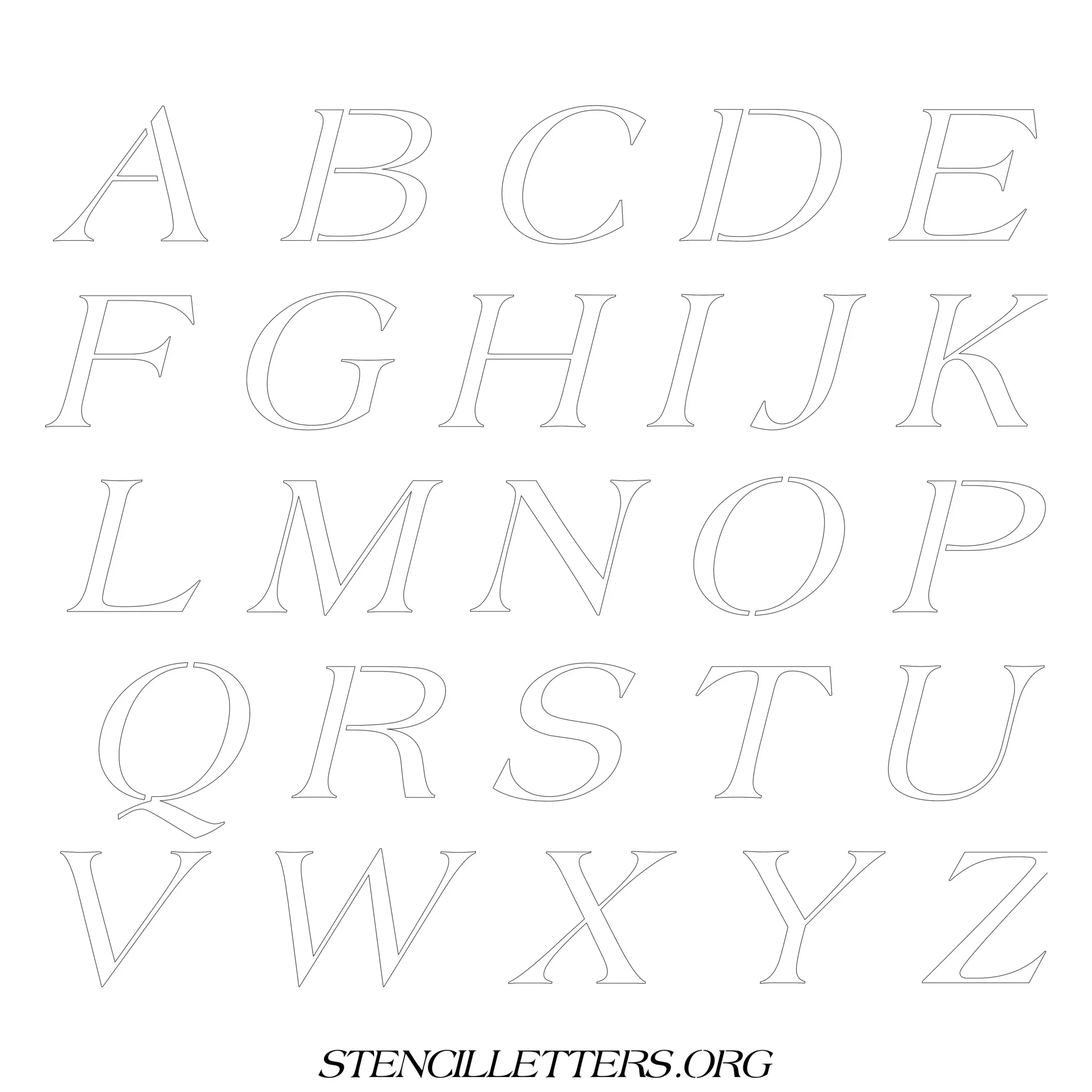 Printable Uppercase Alphabet Stencils - Design 37 Italic