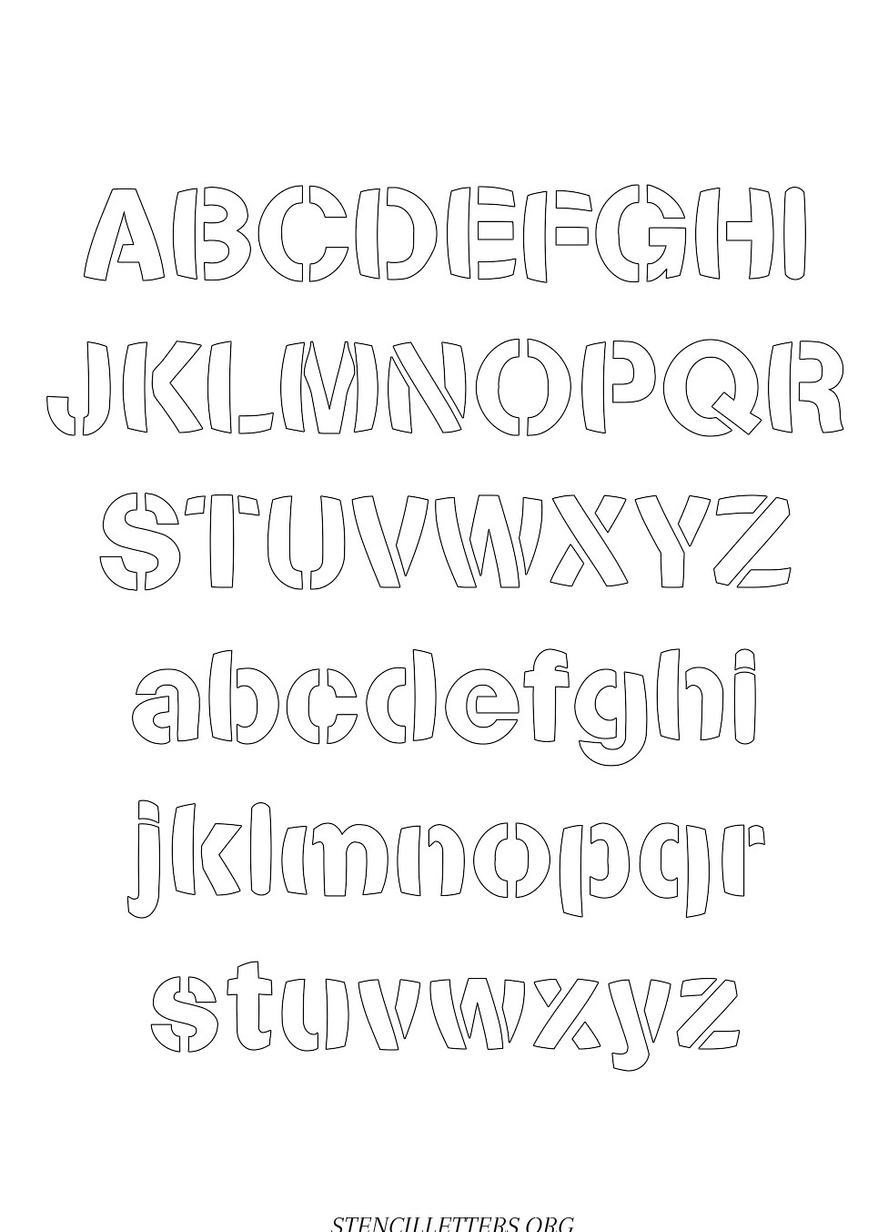 Artistic Bold free printable letter stencils in uppercase and lowercase with outline cutout alphabet letters.