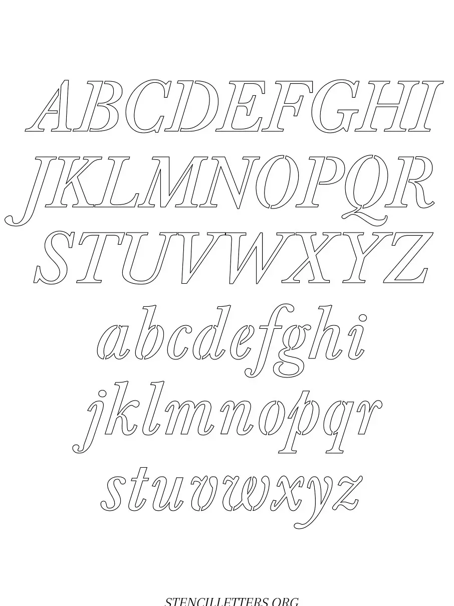 Formal Italic Capital A-Z, small a-z free stencil letter templates to print and cut out.